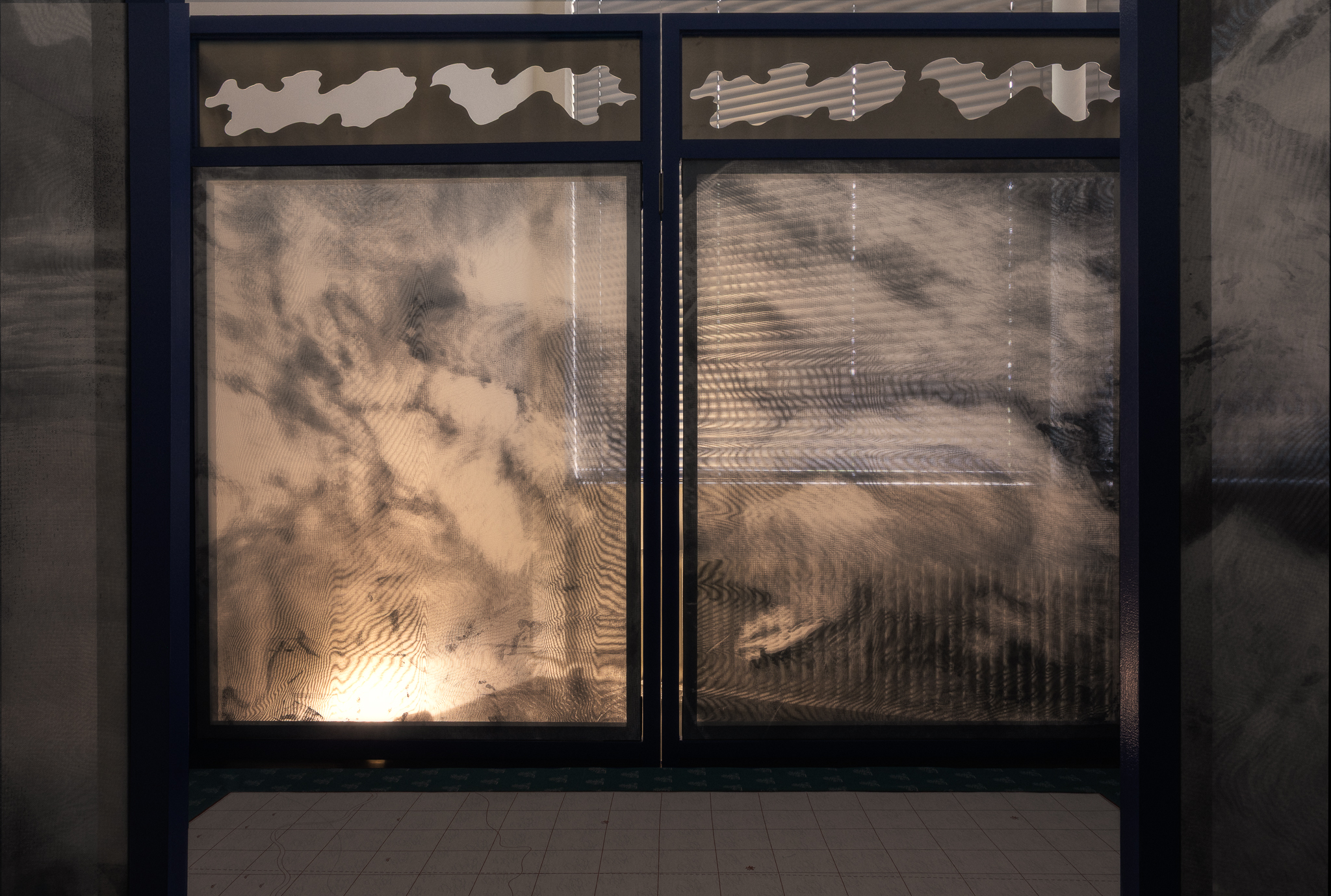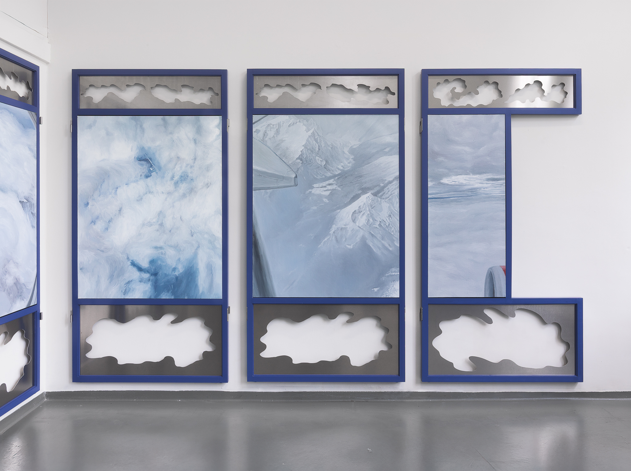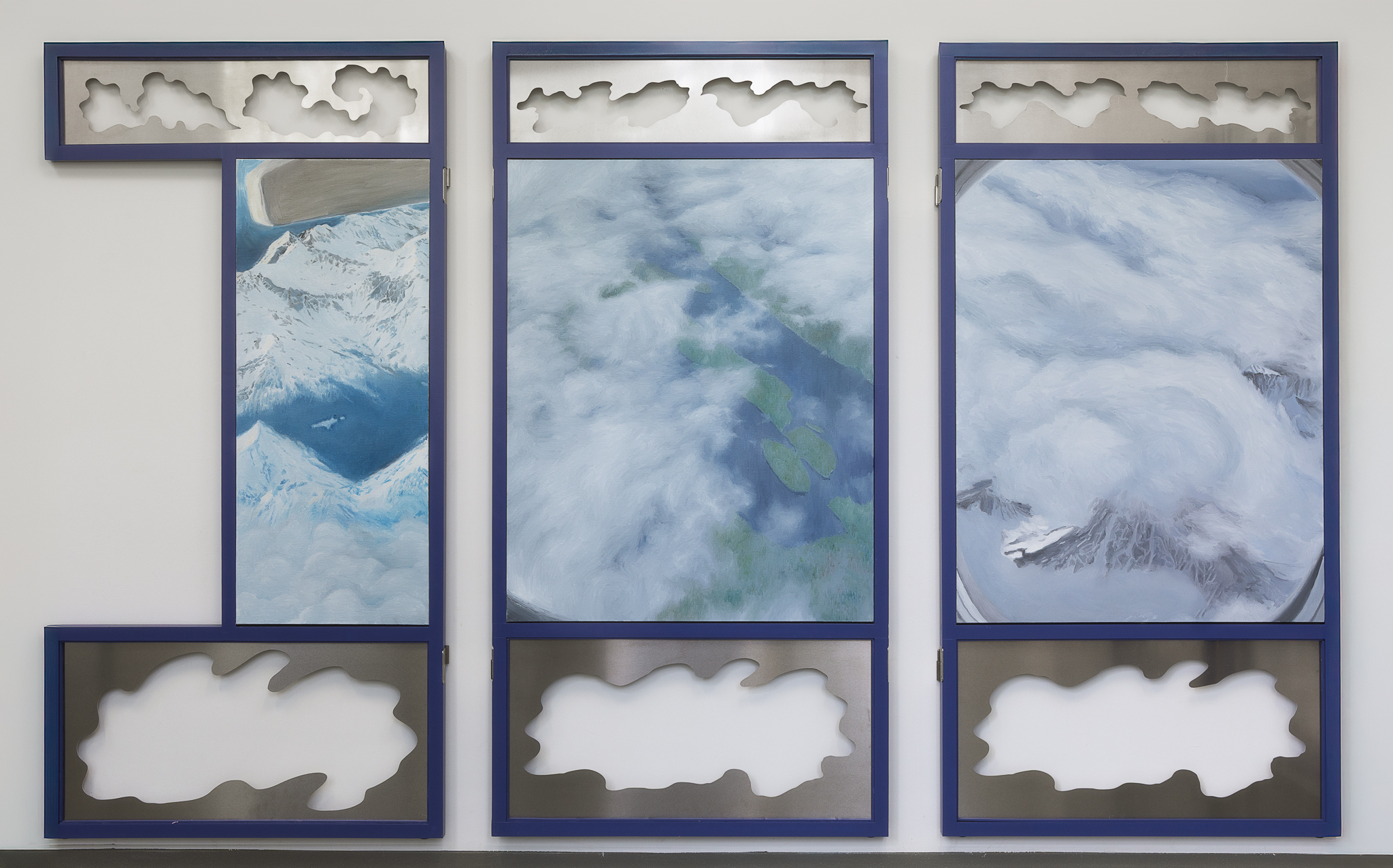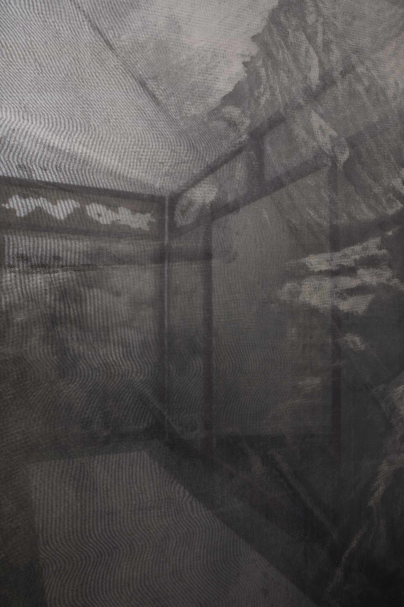 Clouds gathered from past journeys drift across the surfaces—fragments of memory, still yet restless. Traveling While Lying Down (卧游) recalls bed-screens in Imperial China whose painted panels turned rest into imaginative travel. The work moves between two lineages of landscape painting: one a scenic, museological hang, with fragments stilled and flattened for viewing, the other a daily, quiet act of repair, a momentary folding of the landscape into a functioning bed. An invitation to dwelling and participation, depending on when one arrives, the other half is always elsewhere. You catch one state and imagine the other. The exhibition is part of Open Studios 2025 at Jan van Eyck Academie.